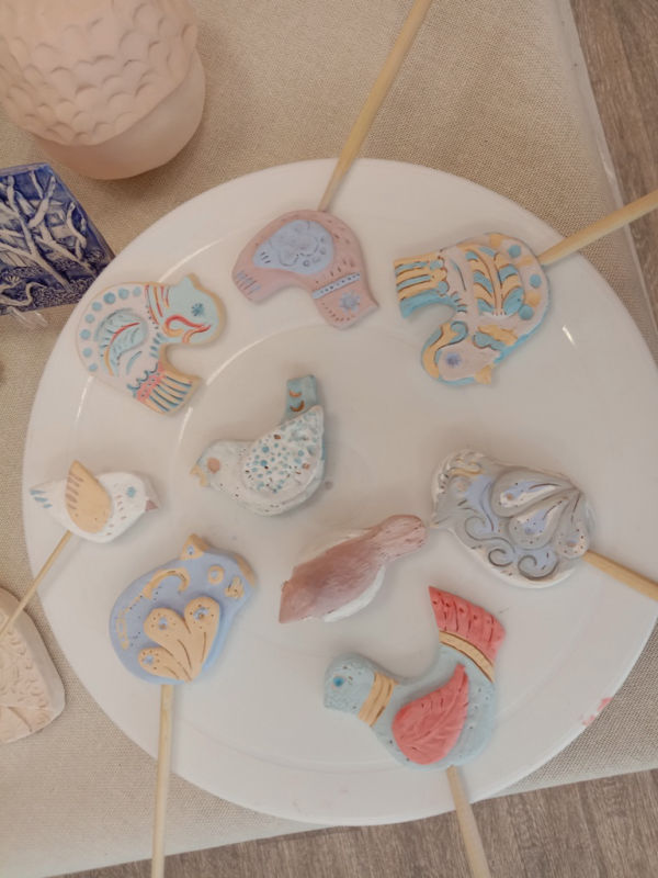 На мастер-классе по нанесению цветной глазури на керамические изделия, который провели преподаватели ДШИ Светлана Сашникова и Юлия Силина, собрались специалисты из разных сфер: усердно трудились над своими изделиями и. о. начальника ОМС Управление культурой ПГО Елена Смышляева, заведующий организационно-методическим отделом ОМС Управление культурой ПГО Виктория Каразей и Татьяна Чернышева - специалист по социальной работе отдела реализации соц. программ АО "Северский трубный завод", а также специалисты из Детской художественной школы.